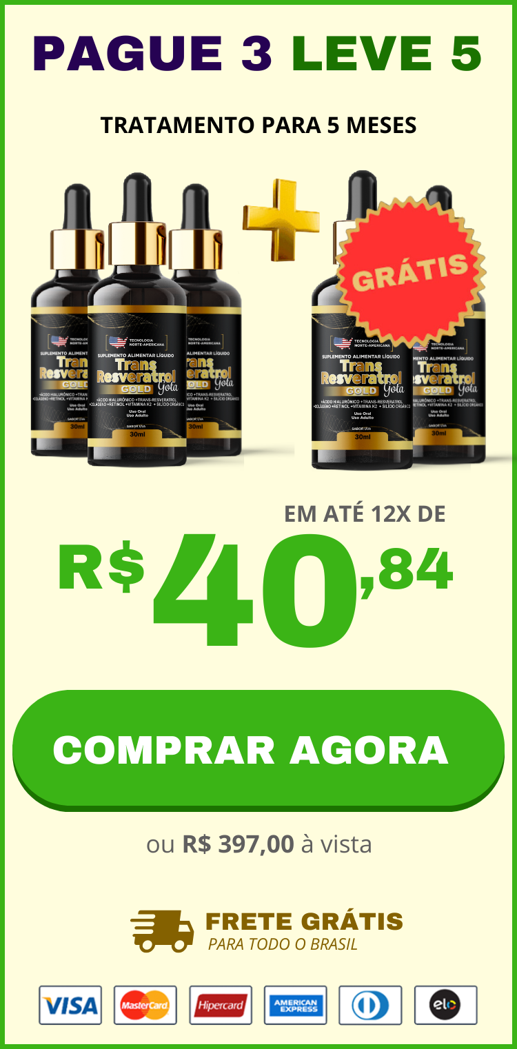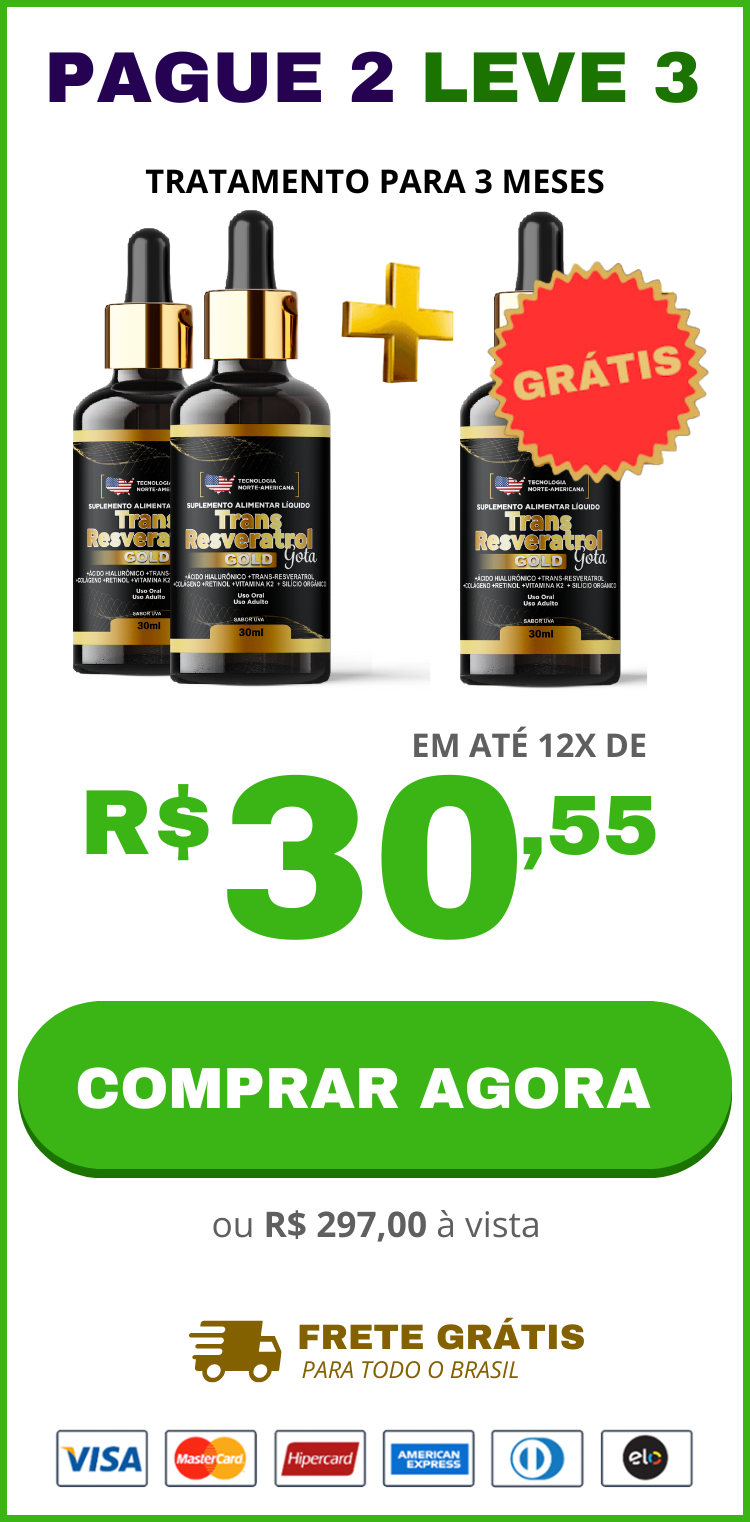 O tratamento Trans Resveratrol Americano + Vitamina K2 é aprovado pela ANVISA e possui uma fórmula exclusiva para eliminar as rugas, marcas de expressão, pés de galinhas e bigode chinês de forma natural.  Várias marcas no mercado brasileiro estão se passando por TRANS RESVERATROL AMERICANO, só que não fornecem resultados esperados para os clientes, então saiba que se você usar um produto realmente americano suas rugas e marcas de expressão literalmente desapareceram em no máximo 90 dias!